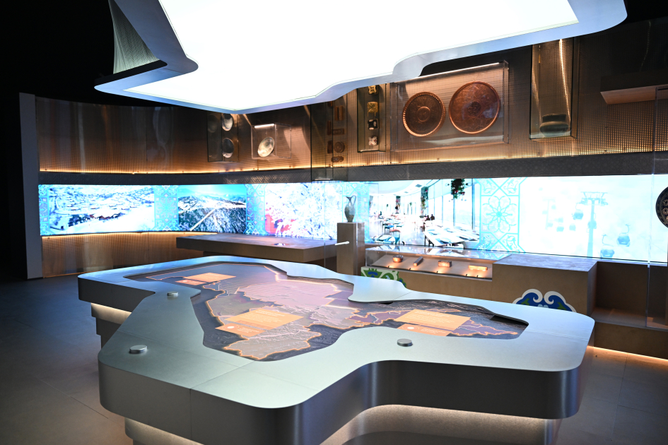 Buradakı sərgi qalereyasında müxtəlif tarixi dövrlərə aid əşyalar və əsərlər təqdim olunur, əcdadların yaradıcılıq potensialı müasir texnologiyalar və rəqəmsal cihazların köməyi ilə nümayiş etdirilir.