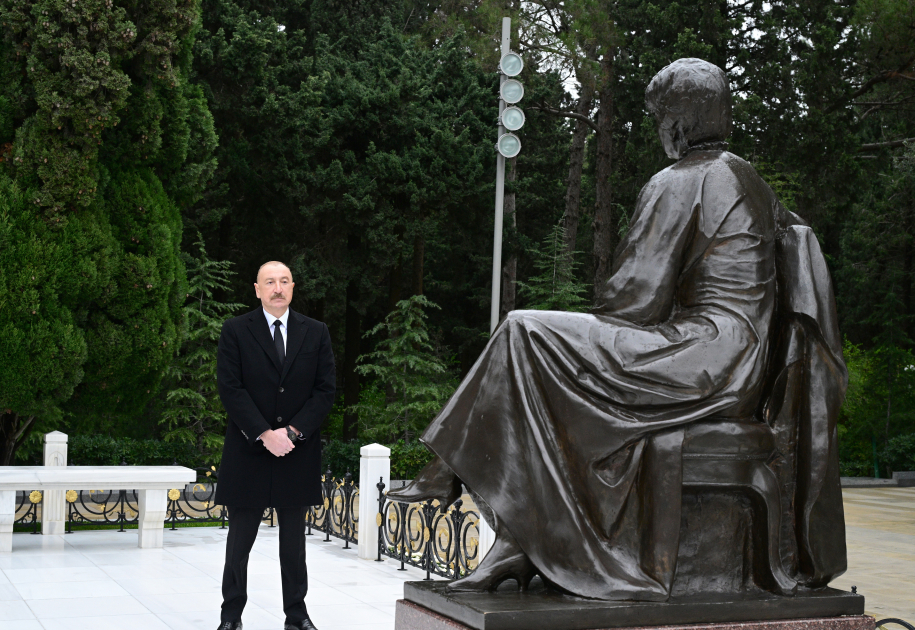 Prezident İlham Əliyev Ulu Öndərin məzarı önünə əklil qoyub.