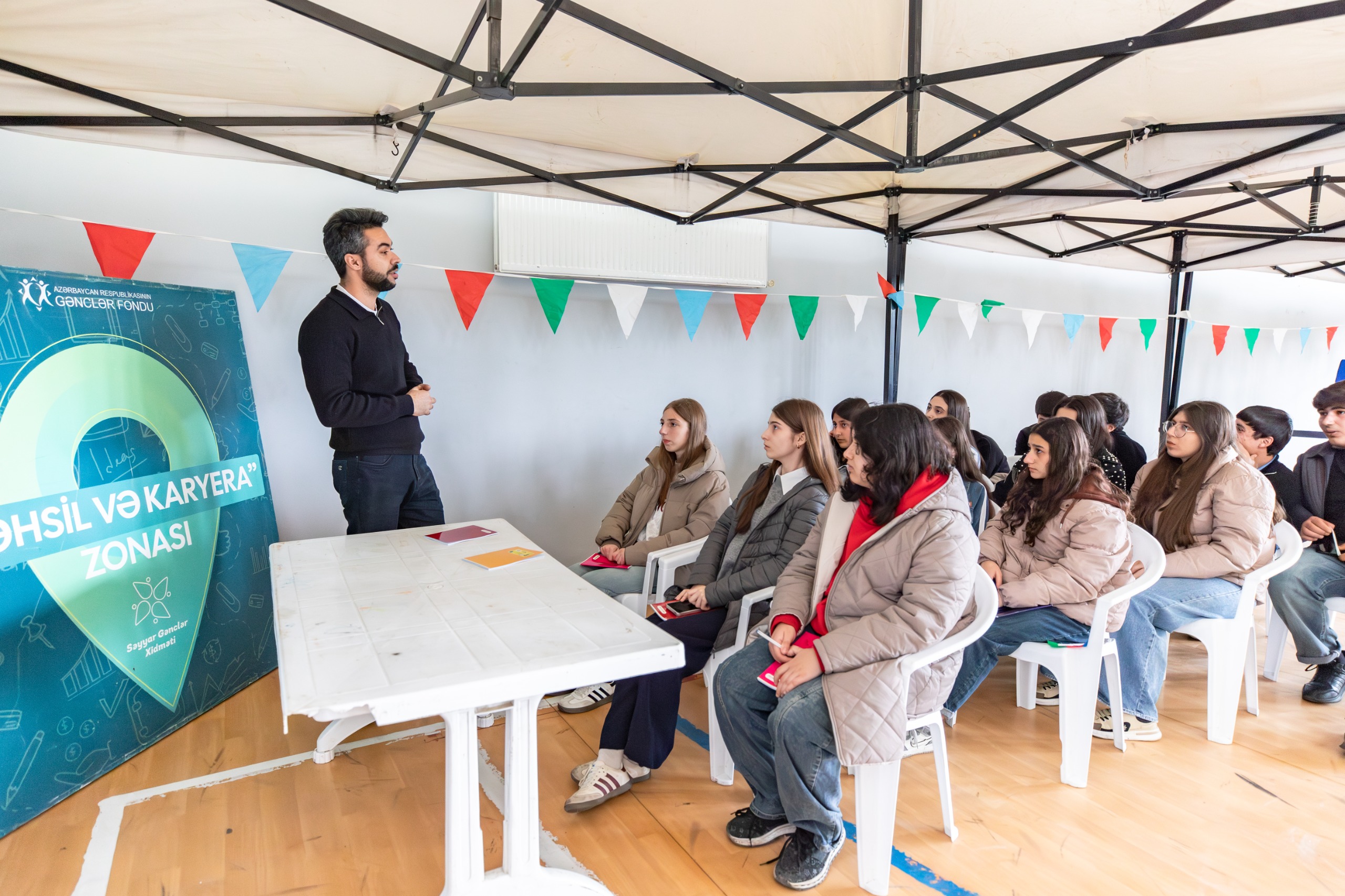 Xatırladaq ki, Azərbaycan Respublikasının Gənclər Fondunun dəstəyi, “Gənc Könüllülər” İctimai Birliyi və Gənclərin İnkişaf və Karyera Mərkəzinin tərəfdaşlığı ilə 5 avqustdan tarixindən icra olunan Səyyar Gənclər Xidməti bugünədək Cəbrayıl, Ağdam, Tərtər, Goranboy, Göygöl, Daşkəsən, Gədəbəy, Qax, Zaqatala, Balakən və Şəki rayonlarında uğurla həyat keçirilib. Azərbaycan Respublikasının Prezidenti cənab İlham Əliyev tərəfindən 2025-ci ilin “Konstitusiya və Suverenlik İli” elan olunması çərçivəsində həyata keçirilən bu layihə ölkə gəncliyi arasında dövlət suverenliyi və müstəqillik kimi fundamental anlayışların daha dərindən mənimsənilməsinə, tarixi Zəfərimizin mahiyyətinin yeni nəslə aşılanmasına, eləcə də mövcud gənclər siyasətinə uyğun olaraq gənclərin intellektual potensialının inkişafına xidmət edir.