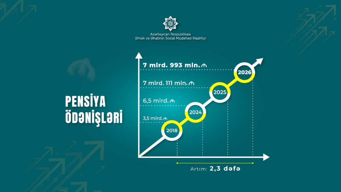 O, həmçinin qeyd edib ki, 2026-cı il üçün pensiyaların maliyyələşdirilməsinə ayrılan vəsait 7 milyard 993 milyon manat nəzərdə tutulub. Bu məbləğ 2018-ci illə müqayisədə 2,3 dəfə çoxdur.